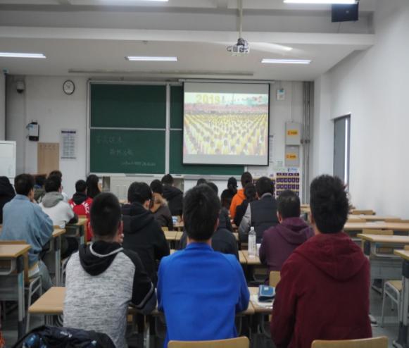 土实181团支部组织同学们认真观看了我校《同心共筑中国梦 建大师生颂祖国》国庆纪录片,把大家再次带入到国庆庆典的爱国氛围中,并进行了“看图猜方阵”的活动。同学们在活动中对祖国的强大有了更为清晰的认识,激发了更深厚的爱国热情。在班主任彭丽云的引导下,同学们表示“身为青年人,要为祖国未来建设贡献出自己的一份力量!”