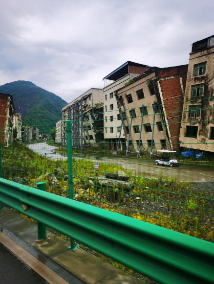 在抵达现场的路程中,触目惊心的震后建筑遗址映入眼帘。陈笑宇老师向实践团详细讲解到此次灾难造成了惨重的人员伤亡和财产损失,大部分建筑的一、二层楼几乎全被摧毁,许多无辜的生命未能逃生。虽然已过去了16年,但灾难带来的创伤依然那么震撼。依稀可见当地居民通过各种方式在纪念遇难者。遗址现场不仅呈现了自然灾害对人类生活的巨大破坏,更展现出了人们在面对困境时所表现出的顽强韧性和坚强决心。