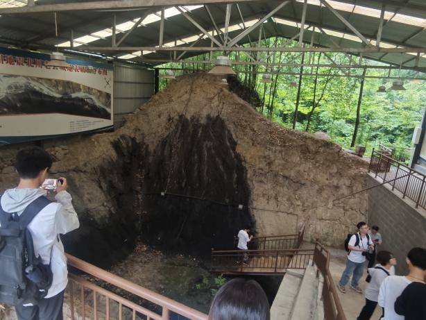在北川震后遗址现场,实践团首先前往沙坝断层朱家科普教学点。周洋老师用生动的比喻讲解了地质灾害的本质,他指出强地震灾害主要表现为山崩地裂、房屋倒塌等,严重威胁人类生命财产安全和基础设施。周洋老师还为同学们分享了断层挖掘与观察分析的经验,并介绍了汶川地震中逆断型断裂的具体表现形式。