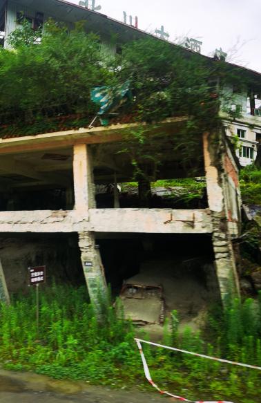 图2 大巴行程沿路震后建筑遗址