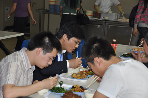 5 月 11 日中午,住房和城乡建设部高等教育土木工程专业评估委员会视察小组专家 先后来到学校食堂一层与同学们一起就餐并进行了深入的交谈。谈话中专家们非常关注同学们的日常生活情况,询问了学校食堂饭菜价位及贫困生状况等具体问题。此外,专家们还了解了学生的课外活动情况,对于金年会学生在学习之余积极进行社会实践予以了高度的评价,并希望金年会学生能够继续努力,不断地将理论联系实际,取得更大的收获。