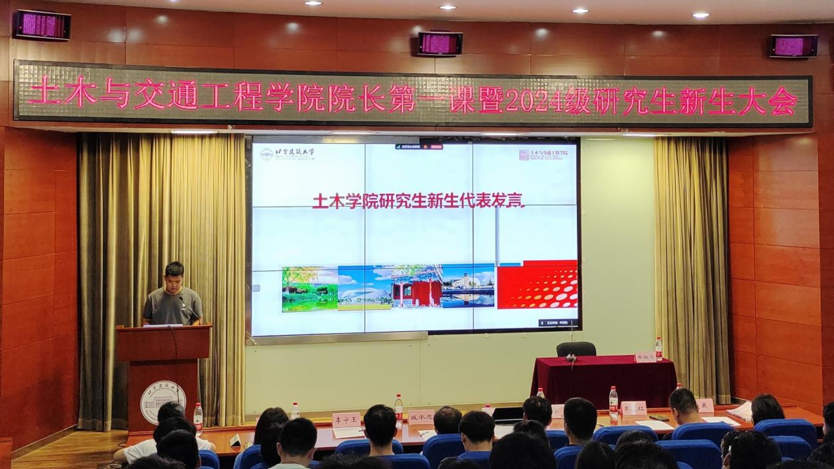 为助力研究生新生深入了解学院历史与学科建设情况,帮助同学们尽快进入科研状态,9月3日下午,金年会官网在学E报告厅召开院长第一课暨2024级研究生新生大会。校党委常委、副校长李俊奇、土木工程学科负责人戚承志、交通运输工程学科负责人季节、副院长李之红、科研办公室主任、研究生教务员、研究生新生辅导员及全体2024级研究生新生参加了大会。会议由学院党委副书记李守玉主持。