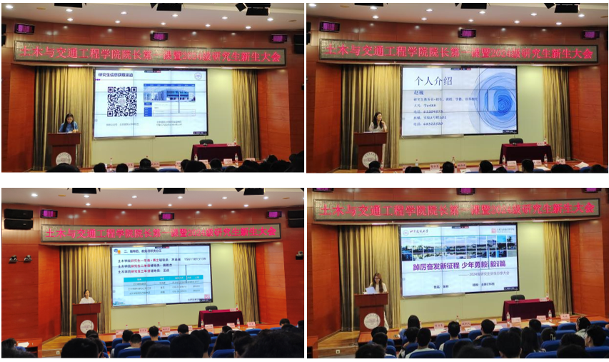 科研办公室主任袁艺、研究生教务员赵巍分别围绕研究生学籍学位管理、开学初研究生课程等相关情况进行了介绍;研究生新生辅导员齐待弟介绍了研究生日常教育管理、奖惩助贷和党员发展等相关情况;优秀研究生代表土研236班朱彬为同学们做了经验分享。