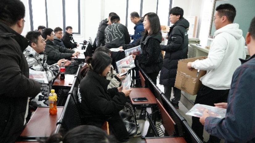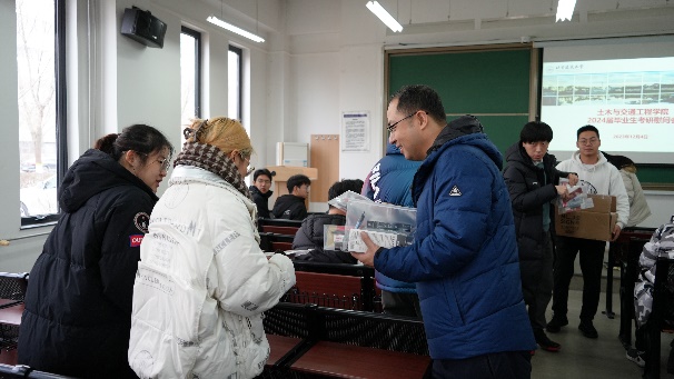 活动最后,学院领导老师为同学们发放考研慰问暖心礼包——一份考研文具和一份专属“明信片”,助力考研学生坚定信念、增强信心。