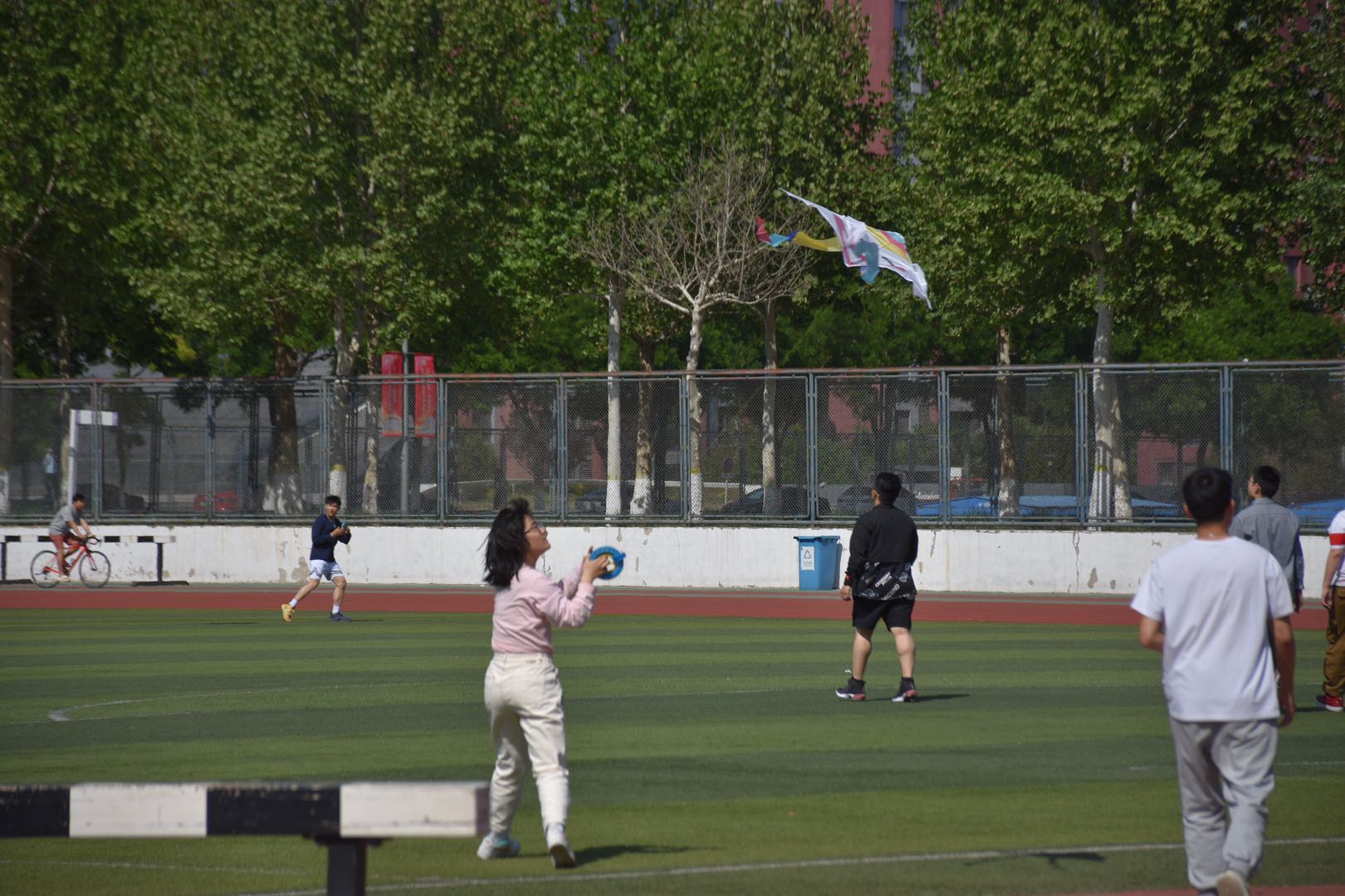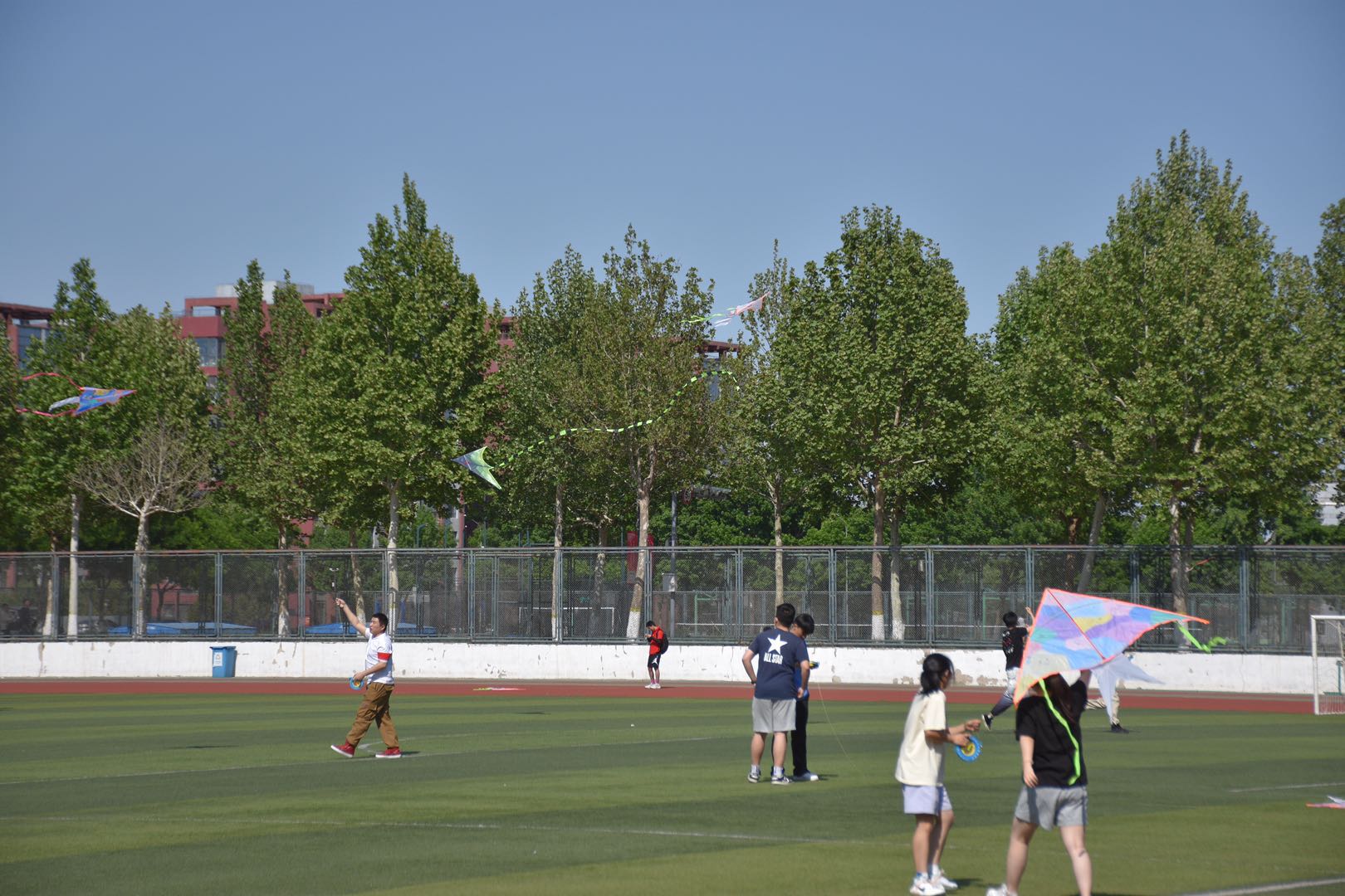 历经半小时的准备活动后,同学们踏上草地,趁着东风放纸鸢。同学们高举风筝,互相配合,随着一声“放”!风筝迎风而起,绿草风筝掩映,蓝天白云相依,同学们手持线盘操控着风筝。托举、助跑、加速、放线、抽线一气呵成。风筝在风的吹拂下一跃而起,许多彩鸢在空中共同起舞,场面蔚为壮观,让风成筝,让笑成颜,飞舞的风筝为整个校园增添了青春的气息。在这里,大家在暖风中感受到小时候放风筝的乐趣,感受到春日午后阳光的温暖,更是感受到校园生活的温情与暖意。