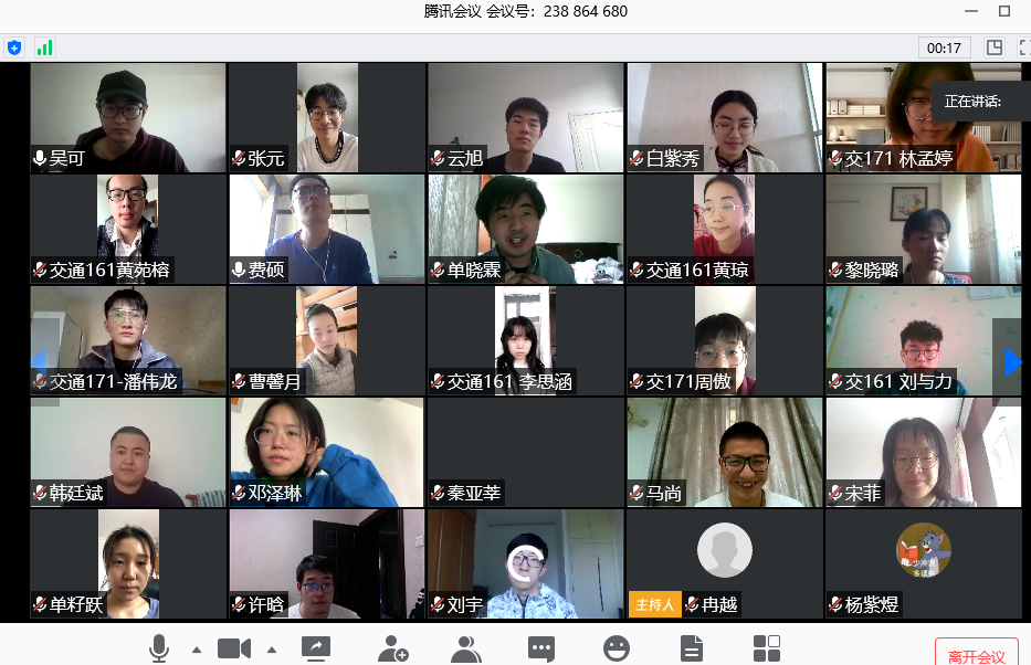 为响应上级党组织号召,加强疫情期间交通工程系教师与学生之间的交流互动,4月28日交通工程系教工党支部、研究生党支部和本科生党支部联合开展了线上“教与学深度对话”党支部共建主题活动,会议由交通工程系本科生党支部书记韩廷斌主持。