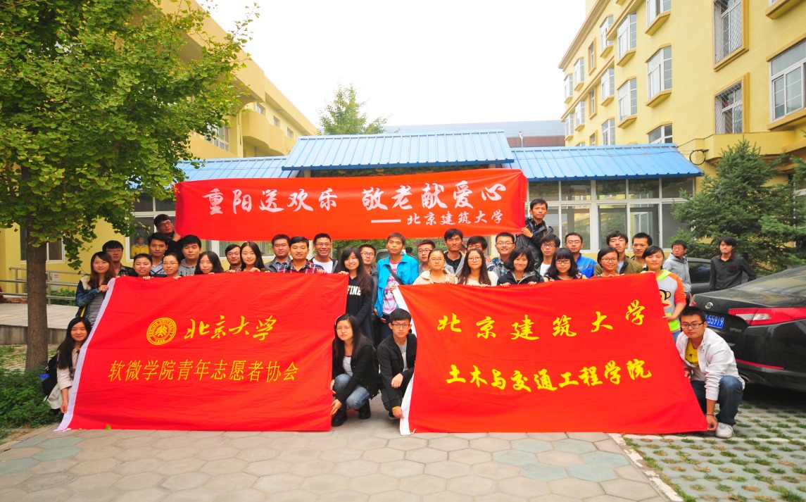 在这次活动中,我们也碰到了北京大学软微学院青年志愿者协会来看望老人的同学,协会的负责人和阳光互助社社长苏海龙同学进行了交流,并表示以后一起做这种公益性的意愿,最后一起留了合影。