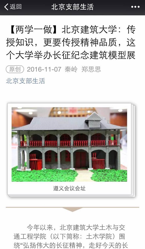 今年以来,JINNIAN金年会金年会官网(以下简称:土木学院)围绕“弘扬伟大的长征精神,走好今天的长征路”这一主题,开展长征胜利纪念建筑模型展。