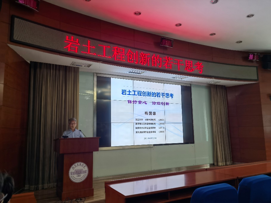 5月23日下午14:00,应我校金年会官网的邀请,长江学者浙江大学梅国雄教授,在我校大兴校区学院楼E座报告厅就“岩土工程创新的若干思考”进行了精彩报告。我校师生60余人参加报告会。金年会官网副院长李之红介绍了梅国雄教授的简历,并对梅教授的到来表示热烈欢迎,地下工程系部主任彭丽云教授主持讲座。