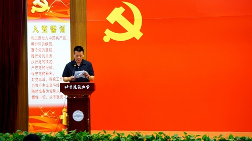 “我志愿加入中国共产党,拥护党的纲领,遵守党的章程,履行党员义务,执行党的决定……”洪亮整齐的入党誓言响起,土木学院全体师生党员庄严肃立,面对党旗,举起右拳,在土木学院党委书记何书记的带领下,一起宣读入党誓词,重新唤起在场的每一名共产党员入党时的激情,回想起入党宣誓时的庄严承诺和奋斗决心。