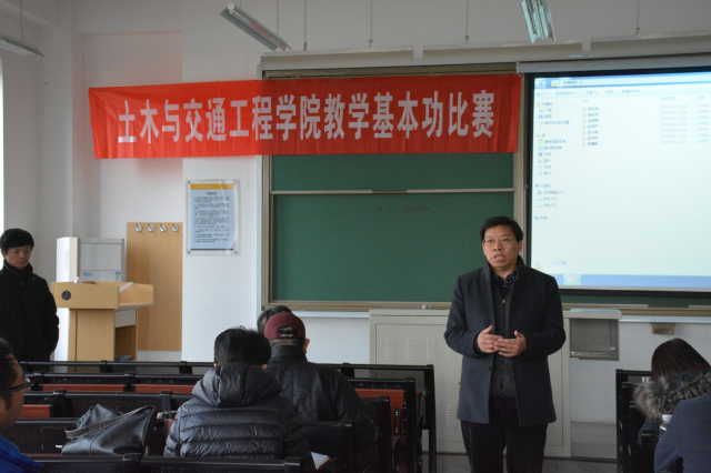 为加强金年会官网(以下简称土木学院)青年教师培养,增强新、老教师在教学方法等方面的交流,展现青年教师风采,检验青年教师教学基本功水平,促进教师积极主动地提高自身的教学能力,2018年1月2日,土木学院在大兴校区学E-139教室举行了第八届青年教师教学基本功比赛。副校长李爱群、教务处处长李俊奇、人事处处长陈红兵、教师发展中心主任侯妙乐、土木学院领导班子成员、学院教师及特邀学生参加了活动。比赛由常务副院长韩淼主持。