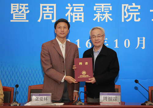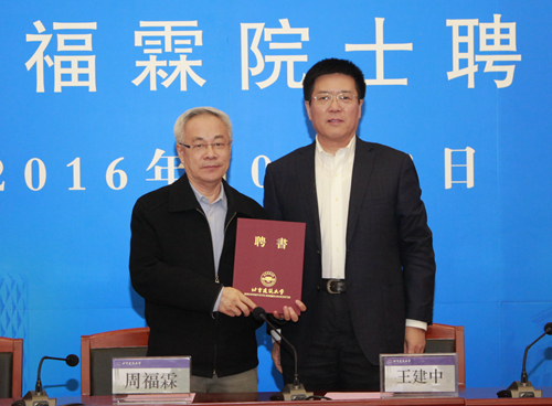 聘任仪式上,党委书记王建中和校长张爱林分别向周福霖院士颁发了JINNIAN金年会发展咨询委员会委员和北京未来城市设计高精尖创新中心学术委员会委员聘书。
