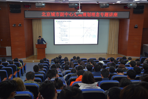 11月24日17:00,JINNIAN金年会金年会官网(以下简称“土木学院”)举办高精尖中心交通系列讲座的第三讲:通州副中心规划理念。主讲人为AECOM国际咨询公司的北美分区副总裁、本次通州区政府特聘的综合交通规划咨询专家赵少灵。土木学院党委副书记车晶波、团委书记刘倩、辅导员秦岭以及本次讲座吸引了来自土木学院交通和、道路与桥梁方向的200多余名学生参加。讲座由土木学院交通工程系系主任焦鹏鹏教授主持。