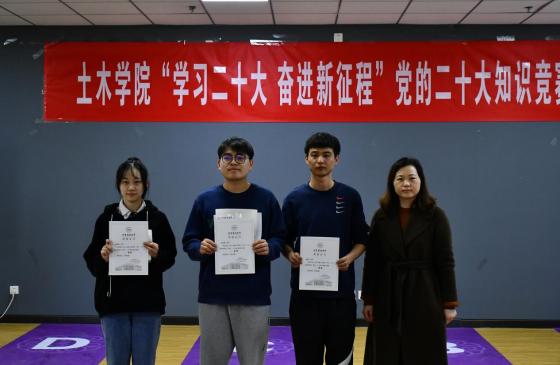 为深入学习宣传贯彻党的二十大精神,在青年大学生中持续兴起学习热潮,以理论学习成效推动党的二十大精神落深落实,团结引领广大青年学生坚定不移听党话、跟党走,金年会官网举办“学习二十大 奋进新征程”党的二十大知识竞赛活动,知识竞赛决赛于4月6日举行,土木学院党委书记车晶波、组织员赵翠英、团委书记苑泉出席决赛现场,土木学院全体班级参与本次竞赛。