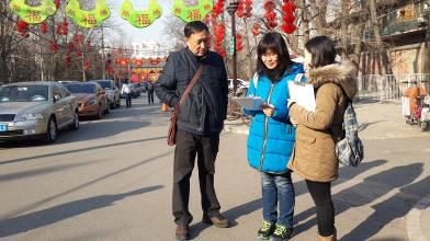 “安全疏散和美北京”社会实践团队成员在指导教师们的带领下,分别于2月13日(腊月25)、2月18日(除夕)、2月23日(正月初五)、2月25日(正月初七)赴地坛公园进行全天开放时间内实时人群密度测量,大家放弃了和家人、亲友的聚会,赶在庙会开始以前到岗准备调研,待华灯初上,熙熙攘攘的庙会游客全部离开之后,全体成员整理分析测量数据,与计算所得手机移动定位数据显示的人群密度进行对比分析,最终,在羊年春节结束之际为地坛庙会提供了具有针对性的人群聚集预警机制。