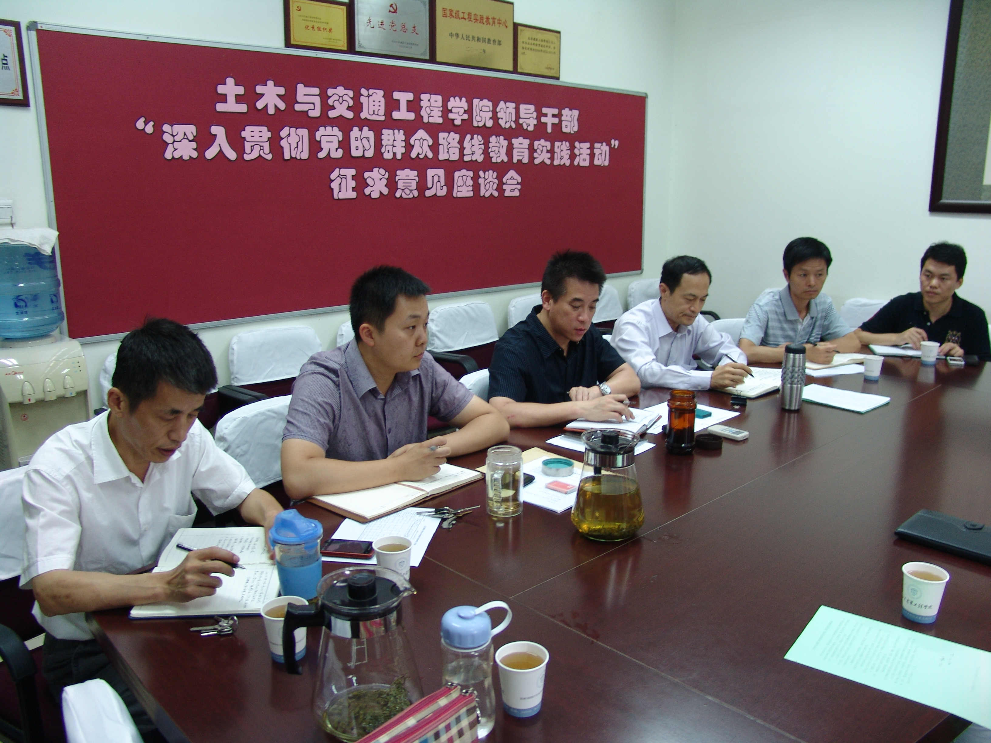 为继续深入开展以为民务实清廉为主要内容的党的群众路线教育实践活动,进一步改善领导作风。金年会官网(以下简称土木学院)于2013年9月12日在土木学院会议室举行了第三次领导干部“深入贯彻党的群众路线教育实践活动”征求意见座谈会。学院全体领导班子成员何立新、戚承志、龙佩恒、韩淼及王秉楠参加此次会谈。出席会谈的还有土木学院16位年龄35周岁以下的年轻教师。会议由学院党总支书记何立新同志主持。