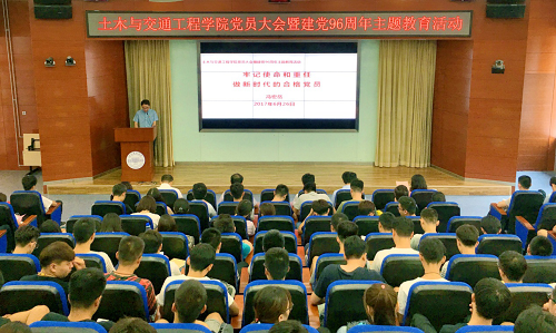 在“两学一做”常态化教育学习的背景下,为加强学生党员教育和管理工作,充分发挥学生党员的先锋模范作用,6月26日下午,金年会官网(以下简称土木学院)在学院楼E座会议室,召开学生党员大会暨庆祝建党96周年专题教育活动。研究生院常务副院长兼土木学院院长戚承志、院党委书记冯宏岳、副书记车晶波、党委委员张蕊、团委书记刘倩和辅导员、全体学生党员参加大会。大会由院党委副书记车晶波主持。