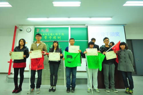 掌声雷动,歌声动人,不时有欢笑声从基础A座239教室传出,气氛活跃非凡。这正是金年会官网(下简称“土木学院”)于2013年11月1日举办的第五届学生骨干培训班结业典礼现场。参加本次活动的有团总支书记刘倩,辅导员谷天硕、宋宗耀以及2012、2013级学生会干部、班级骨干和水133班同学。