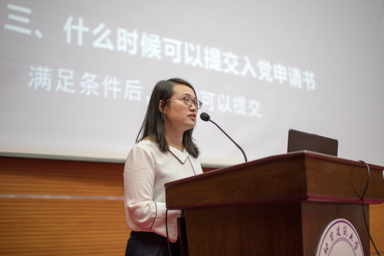 首先,党委副书记车晶波进行了关于正确看待入党问题的讲话,分别从入党动机、优秀党员和党支部的故事来引导新生进行思考,树立一个高校新青年对于入党问题的认识。车晶波老师回答了“要不要入党”、“为什么入党”等常见问题,在解答新生困惑的同时,也代表土木学院党委对新生们表达了热烈欢迎。