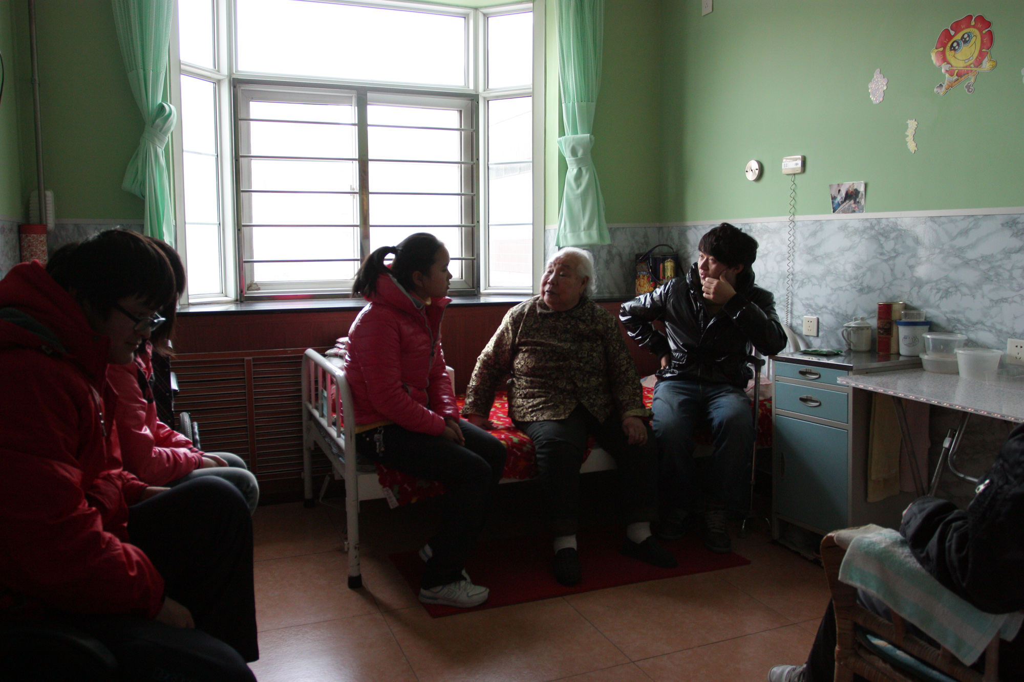 在弘福达养老服务中心,同学们热情的陪老人聊天。在聊天过程中,老人们表达了对现在敬老院的生活十分满意,表达了对社会福利的感激。同时,也对在场的大学生们提出了一些期待:社会飞速发展需要大量的新型人才,这要求在校大学生完成专业学习的同时,拓展视野,拓宽知识面,全方面综合发展,时刻为祖国的建设做出贡献。除此之外,老人们还向同学们讲述了改革开放前后的个人经历以及多年来社会福利、教育投入、公共设施等方面的变化,教导同学们珍惜现在所拥有的一切,努力学习,回报社会。而同学们也将自己在外面读书的情况以及自己家乡的建设和老人进行了交流。