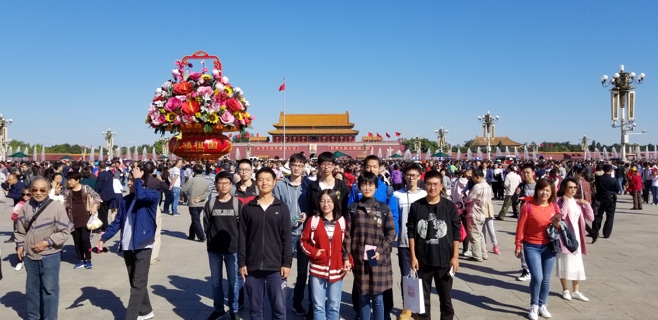 “携手今朝·喜迎国庆”共迎祖国69周年华诞,祝愿祖国繁荣富强!在这举国欢庆的时刻,土木学院组织留校学子一起走进天安门广场、故宫、景山公园等地欢度国庆,院党委副书记车晶波带领学生开启首都文化魅力之旅。