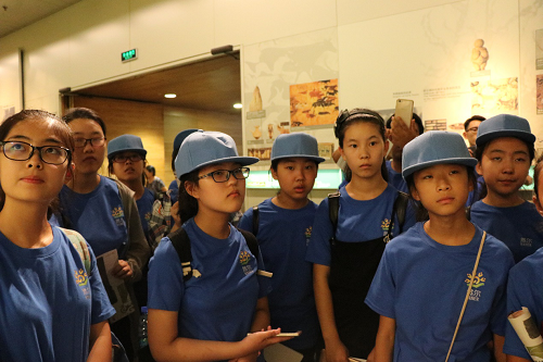 在短暂的休息和午餐之后,实践团成员陪同孩子们参观了首都博物馆。通过观看博物馆里富有历史感的展品,听着老师们富有趣味的讲解,孩子们了解了北京城的民俗和历史。八名实践团成员和四名老师各自负责跟着自己组的孩子们,寸步不离确保孩子们的安全。