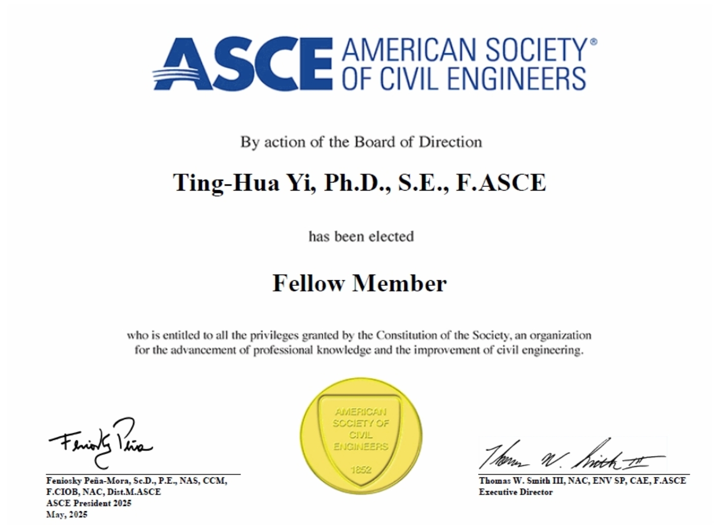 据悉,ASCE会士是经土木工程领域权威专家组成的审核委员会严格评审和投票表决产生,仅有3%的ASCE会员获此殊荣。入选者须在职业生涯中取得国际一流水平的研究成果,且具备深厚的专业知识、丰富的实践经验、广泛的学术影响和高质量的人才培养。