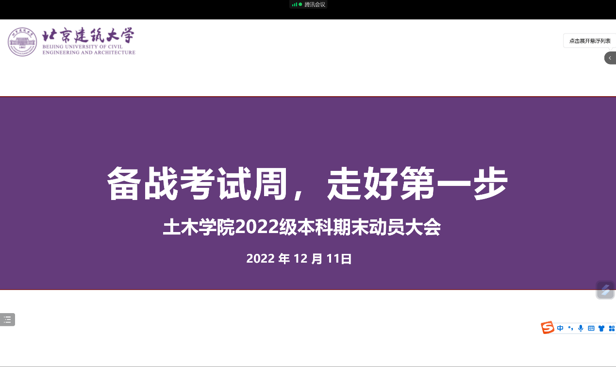 为贯彻落实《JINNIAN金年会2022年新生引航工程实施方案》,加强学风建设,引导大一新生尽快适应大学学习生活,了解大学课程特点,做好期末考试复习准备,2022年12月11日,土木学院线上召开2022级本科新生期末动员大会。