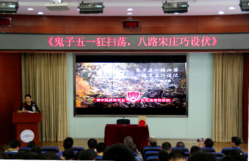 接下来,冀中抗战研究会左月燃教授讲述《鬼子五一狂扫荡,八路宋庄巧设伏》的真实故事,用感人的语言为同学们描述了1942年八路军在冀中与日本侵略者作战过程中,左叶将军带部队保护人民群众的安全,军民齐心,突出重围的故事,以少胜多的经典战役,赢得了听众们阵阵掌声。