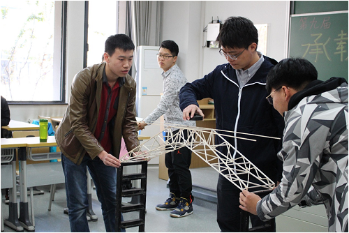 大学生承载力大赛是我校的传统赛事,充分发挥了第二课堂的积极作用,旨在培养学生的动手能力、创新能力、团队协作能力和知识运用能力,以木棍和胶水作为原材料,制作桥梁模型,要求各支参赛队伍在满足一定跨度、高度的情况下最大限度地增加承载力。