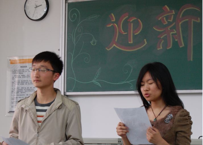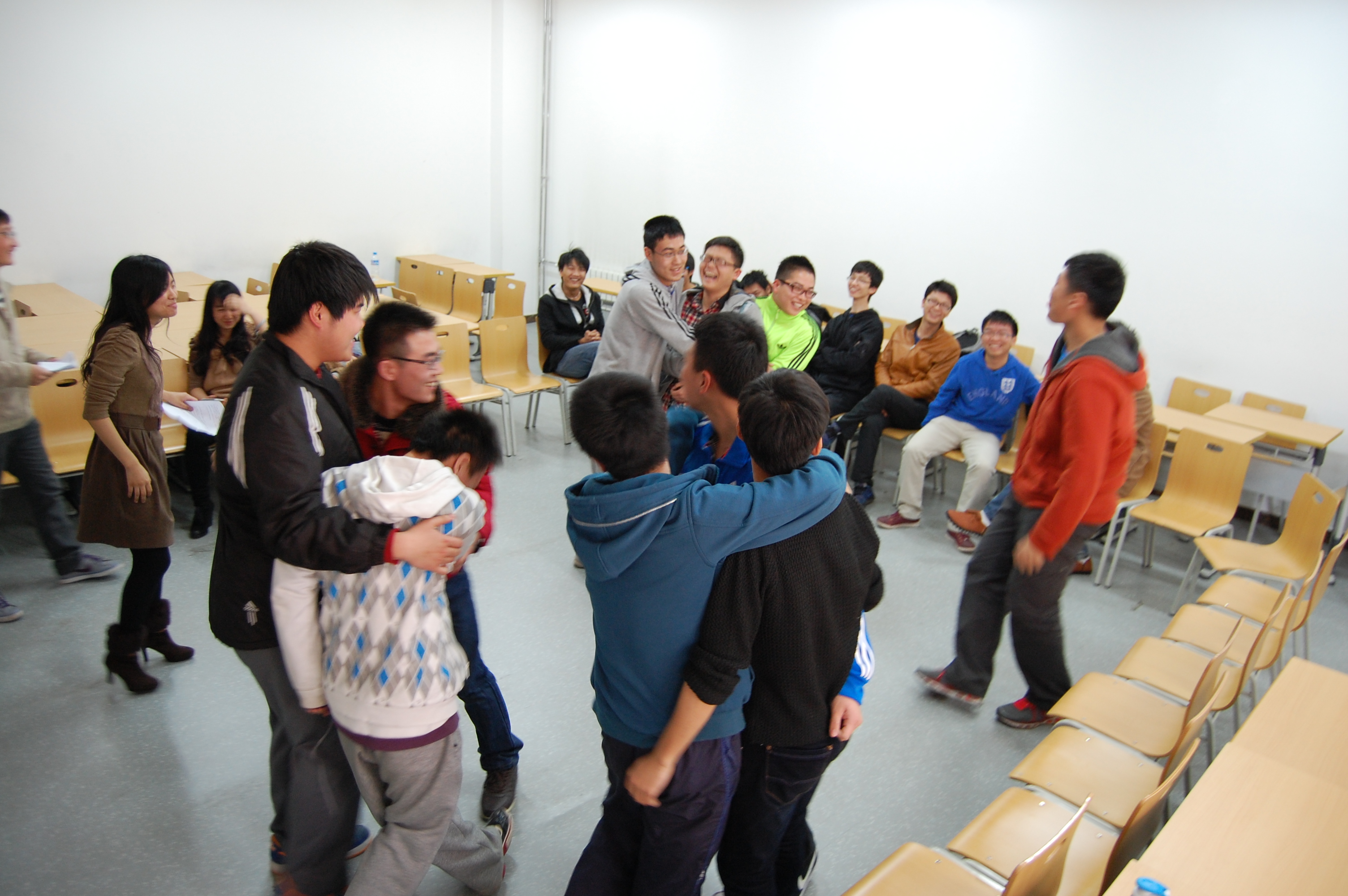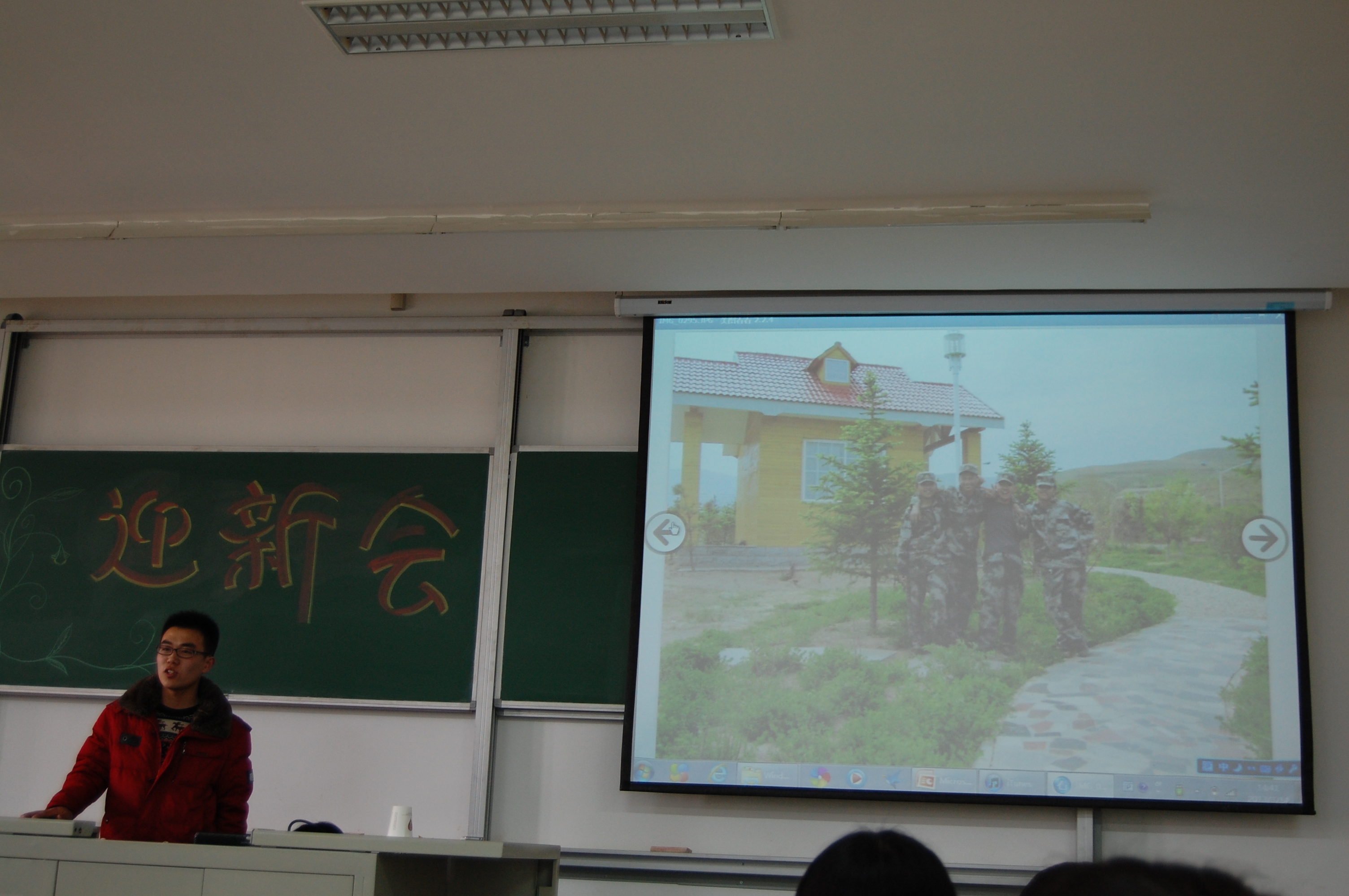 下午 2点,迎新会正式开始。首先主持人欢迎了邸鹏同学,并向他介绍了班里其他的同学。其次邸鹏做了自我介绍,并通过在军队的照片和视频向同学们展示了他的军旅生活。同学们认真的听着,被军人的品质和深深的战友情所打动。接下来就进入了游戏环节。三个游戏之后,大家玩的都非常开心。在游戏中,邸鹏熟悉了新同学,大家也认识了新同学。大家在跑跑跳跳中消除了隔阂,增进了感情,渐渐地大家变得熟知,变成了好朋友,好兄弟。