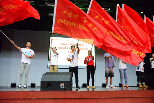8:30,开营仪式在基地综合楼报告厅准时举行,首先基地领导为本次各实践高校授旗,并对参与成员提出实践要求和殷切希望。开营仪式中特色环节“激情30秒”,要求每所高校的实践团利用有限30秒时间进行登台展示。我实践团全体成员用嘹亮的口号表达了我们的心声:“用知识勾画蓝图、用蓝图构造建筑、用建筑托起梦想,土承天下,木载苍穹,我们来自JINNIAN金年会”。至此,2016年第五期(基地总第1028期)“井冈情·中国梦”全国大学生暑期实践季专项行动正式拉开了它的序幕。