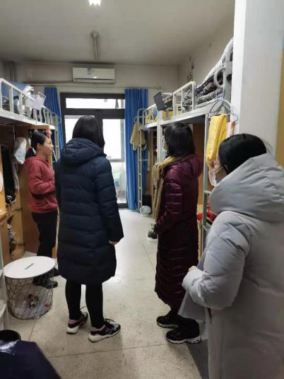 到学生宿舍看望了未离校学生,了解学生学业情况、离校日期等,叮嘱学生离校时注意关闭宿舍电源、锁好门窗,确保宿舍在寒假期间的安全。回家确保旅途安全,面对疫情复杂化,做好个人防护。