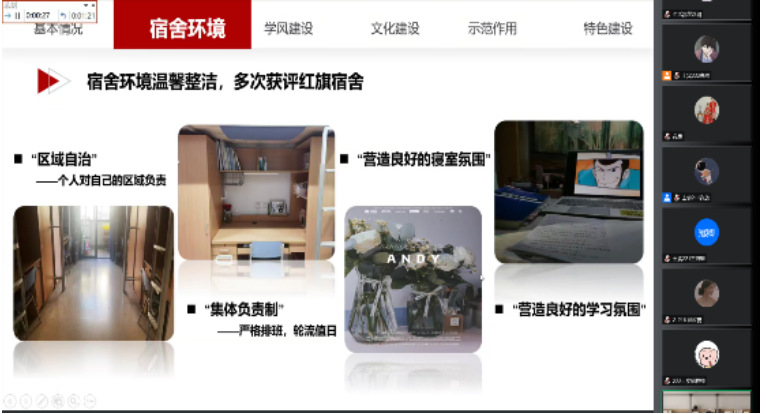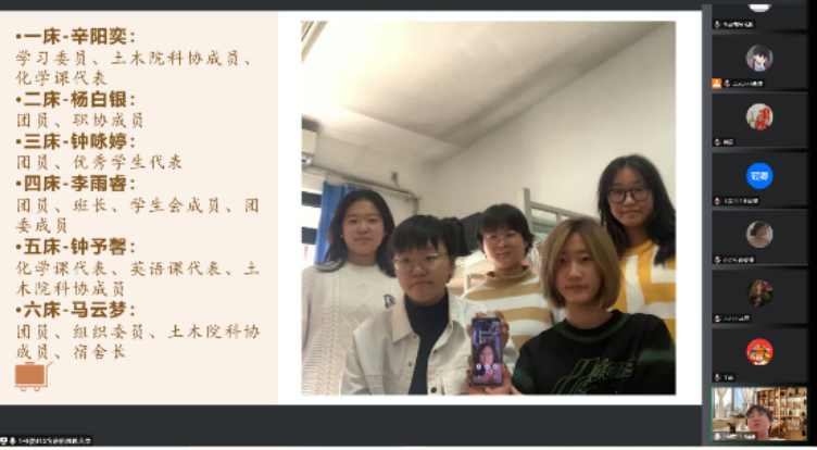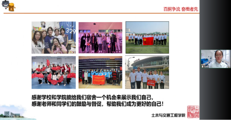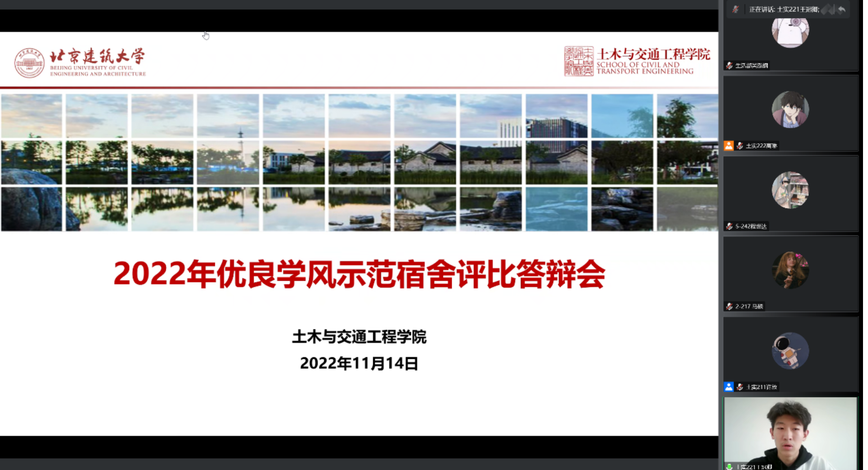 为营造学风优良、温馨整洁的宿舍环境,建设奋发有为、健康向上的宿舍文化,11月14日土木学院在线上开展2022年 “优良学风示范宿舍”创建与评选活动。土木学院党委副书记、副院长李红、团委书记苑泉、辅导员余静、张萌、苗胜杰、刘梦瑶、王虎、李航、黄元景出席并担任评委。