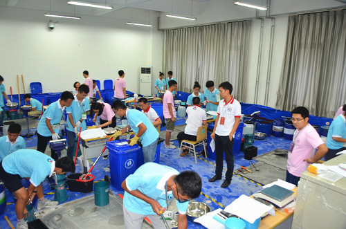 7月23日上午,大赛开幕式结束后,参赛师生们的热情更加高涨,学生个个摩拳擦掌、跃跃欲试,准备在接下来的配合比设计和实际操作比赛中一展身手。上午10:00-11:30,大赛配合比设计的比拼在基础楼A座二层、三层教室紧张而激烈地进行,各参赛队团队协作,通力配合,信心十足,势在必得。