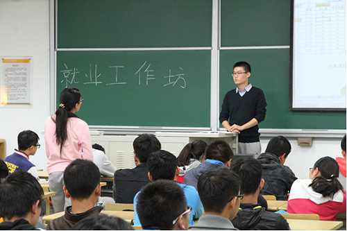 在此次工作坊中,张佳滨校友从2013级同学的就业意向统计情况说起,据初步统计2013级学生中有50%的同学希望考研,张佳滨用金年会的近三年考研数据来直观的告诉大家考研和就业的差别以及考研的难度和要求,他希望大家“根据自身情况的考量和听取老师的意见来选择自己是否真的合适考研”,学长的理性而又客观的一番话让到场的同学们觉得应该重新审视自己设定的毕业目标。随后张佳滨校友给大家就11级同学们的就业情况为例做了非常详细的就业情况分析。学长不仅分析了就业的单位情况,还详细的剖析了签约单位的优势和劣势。接着学长讲了就业的时间轴,随着PPT上时间轴的起落也使大家心里也倍感压力。最后,学长就选择就业方向、选择就业单位、面试注意事项等跟大家做了分享,把自己就业选择的体会和面试的宝贵经验毫不保留的分享给大家。工作坊途中同学们多次自发的响起了阵阵掌声。