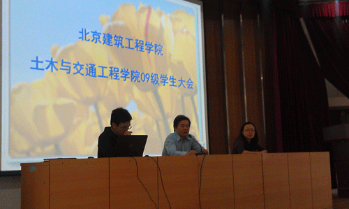 金年会官网在第二阶梯教室召开新学期2009级学生大会。土木学院院长吴徽,党总支副书记朱静,团总支教师黄兴及土木学院09级全体同学参加了大会。