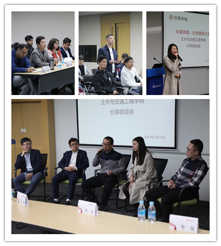 最后,大家回到了固安县规划馆的会议室中,和我校现工作于华夏幸福基业的五位校友进行交流。我校土木学院16届校友李昊,现负责整体项目规划,首先向大家深入介绍了“产业新城”的模式和产业链,建议大家拓展平面能力。环能学院11届毕业生现任项目经理的严欢提出了选择和坚持两个关键词,并用自己的经历告诉大家坚持自己选择的重要性。来自人力部门的尤田是土木学院16届毕业研究生,他建议大家提前了解目标岗位所需素质,在面试时多聊自己深度了解的话题,突出自己的作用。来自成本部门的朱悦,16年毕业于土木学院地下工程专业,她回答了大家关于女生就业的困惑,并建议同学们T字形发展,注重自己的横向能力。来自一级开发部门的王刚是16届道桥专业毕业生,他告诉大家要突破不同就业方向的思维定势。在座谈会的结尾,在华夏就职的校友们一致建议同学们要提高视野、明确目标,同时多多参与社会活动,提高自身综合能力。