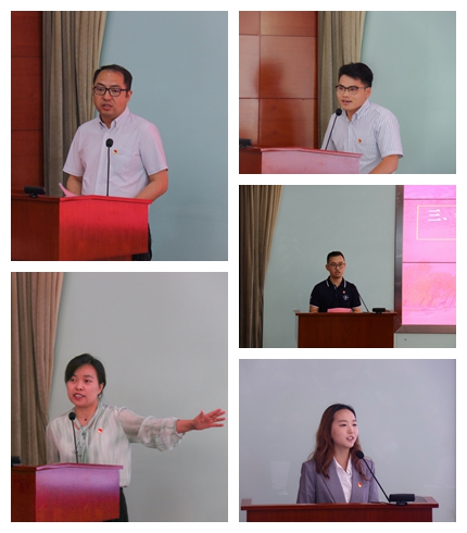 辅导员代表黄元景讲述了《以科学家精神点亮青春梦想》主题教育微党课,号召各位学生党员要向如钱学森、黄旭华、黄大年等科学家们看齐,胸怀壮志、心怀国家,脚踏实地、不断耕耘,为中国式现代化新征程做出自己的贡献。