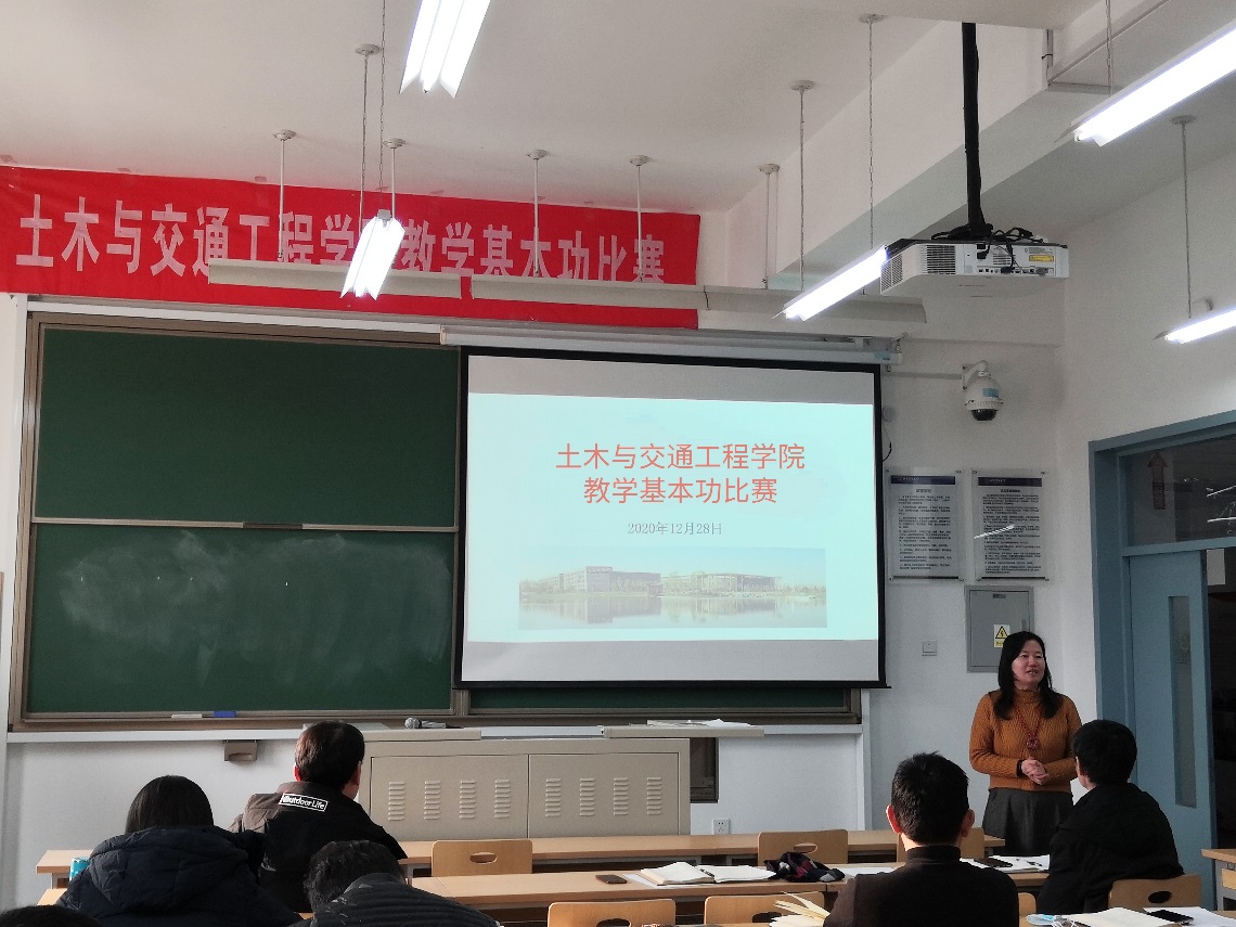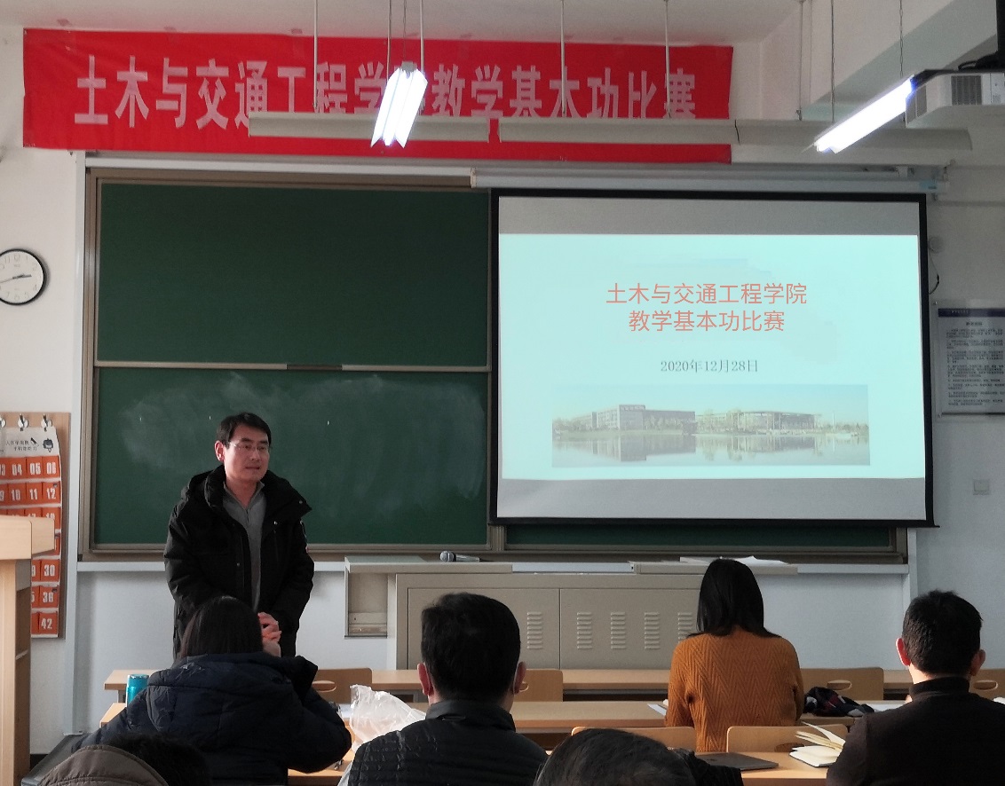 2020年12月28日金年会官网(以下简称土木学院)在大兴校区学院楼E座举办第十一届青年教师教学基本功比赛,共有4名青年教师参赛。人资处处长杨建伟、校工会常务副主席刘艳华、教务处副处长许鹰出席并致辞,土木学院领导班子成员、学院督导组成员、各系部教师代表担任本次比赛评委,全体博士后教师参与观摩,教学副院长廖维张、学院督导组组长张新天共同主持本次比赛。