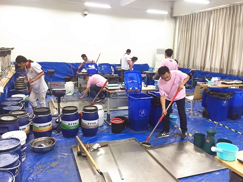 大赛分别于7月22日20:30-21:30及7月23日10:00-11:30进行了大赛参赛队员个人理论考试及混凝土配合比的团队笔试。