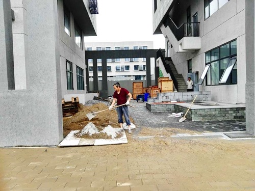 实际操作部分为现场混凝土配合比设计、拌和及性能测试。本次大赛设计主题是"C30大流态混凝土"。技术评议组和裁判组根据配合比设计的合理性、现场拌和操作的正确性、拌合物的工作性进行评分。学生们一边拿起计量器认真配比,一边抄起铁锨搅拌砂石,场面非常热闹。