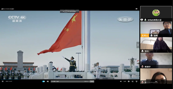 会议伊始,全体参会人员观看升国旗仪式,奏唱国歌。随后播放了全民战“疫”微视频。师生共同感受疫情发生以来,全国上下众志成城,体现了中国力量和面对疫情的必胜决心,有力增强了师生的爱国主义信念,涵养了家国情怀。