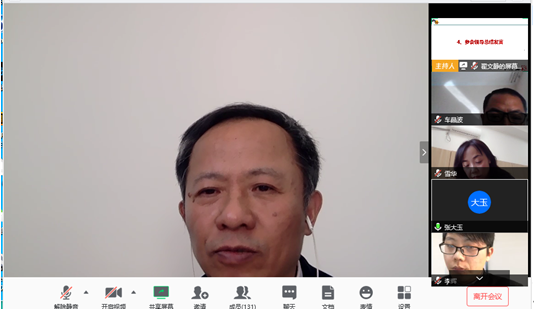 最后,张大玉副校长总结讲话。他提到,面对这场“疫情”的大考,在党中央的坚强领导下,万众一心与之斗争,并已呈现出了总体向上的良好态势;本次“一对一”帮扶活动以问题为导向,切实解决研究生实际困难,同时引导学生坚定信心,共同度过疫情防控关键时期。他希望全体研究生党员能够关注热点、树立标杆,展现出一个学生党员应有的责任和担当。大玉校长还寄语同学们要珍惜时光,牢记研究生的学业科研任务,虽然不能返校,但要利用这段时间在家认真梳理问题、提炼问题,进而将其变成知识存储的重要时光,并分享了论文写作的方法和技巧。
