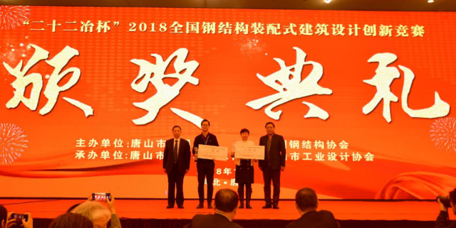 “二十二冶杯”2018 全国钢结构装配式建筑设计创新竞赛由中国钢结构协会、唐山市人民政府共同组织,以“绿色唐山?创意钢构”为主题。来自设计院、企业、高校等组成的23个设计团队参加比赛,最后评选出特等奖1项(中国二十二冶集团有限公司、中冶建筑研究总院有限公司、清华大学代表队的心悦华府作品),1等奖2项(中国京冶工程技术有限公司、同济大学代表队的城市魔方作品及JINNIAN金年会、多维联合集团有限公司代表队的唐山之窗-综合办公楼方案设计作品),二等奖5项,三等奖7项,优秀奖8项。