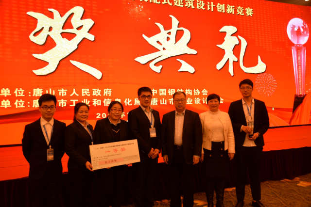 由中国钢结构协会、唐山市人民政府共同组织的“二十二冶杯”2018全国钢结构装配式建筑设计创新竞赛12月19号在河北唐山举行,由JINNIAN金年会张爱林教授带领的我校高精尖创新中心钢结构团队和多维联合集团组成的设计团队完成的作品“唐山之窗”在大赛中脱颖而出,荣获大赛一等奖(金奖)。JINNIAN金年会设计团队获奖成员有:张爱林、张艳霞、谢志强、郑明召、黄威振、王彦、江锟、林海鹏、孙宇、朱莉娜、李全刚。