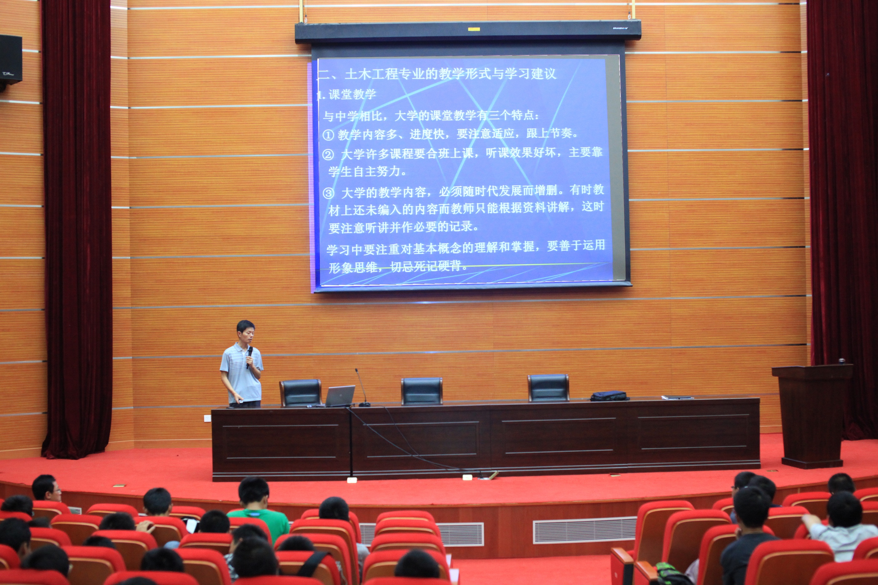 韩淼老师以图文并茂的形式向建筑工程方向的同学介绍了土木工程的定义和发展史,让同学们对将要学习的专业有了一个简单的认识。同时介绍了本专业的培养目标及本科毕业的就业方向,建议大家能够及早规划自己的大学生活。他强调了大学的学习是一个能力的培养过程,并鼓励同学们一定要养成能够自学并自己解决问题的能力。