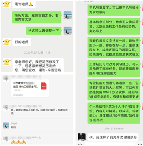 土木学院严格落实学校开展“线上”就业指导工作的精神,将切入点瞄准了线上简历诊断及线上面试的准备。建立线上就业指导群,由就业辅导员老师针对不同就业情况进行指导,及时为学生疏导压力,答疑解惑;为就业意向不清晰的学生提供招聘信息,指导学生开展个人SWOT分析,挖掘个人优势,明晰就业意愿;开设简历巡诊咨询台,帮助学生打造就业求职“金名片”。