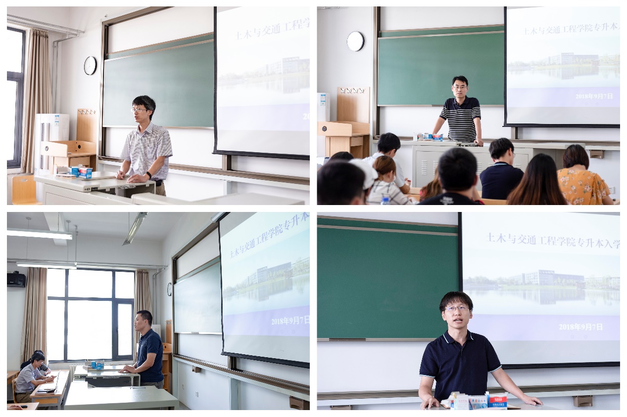 为帮助专升本同学熟悉校园环境,尽快融入新的学习与生活,更快了解专业的内涵与要求,引导学生树立远大目标,金年会官网于9月7日举办2018年专升本主题教育活动。土木学院常务副院长韩淼,建筑工程系主任廖维张,道路桥梁工程系主任许鹰,交通工程系主任李之红,院长助理、材料工程系李飞,教学科研办公室主任孟庆东,2016级辅导员苑泉及全体2018年专升本新生参与本次活动。