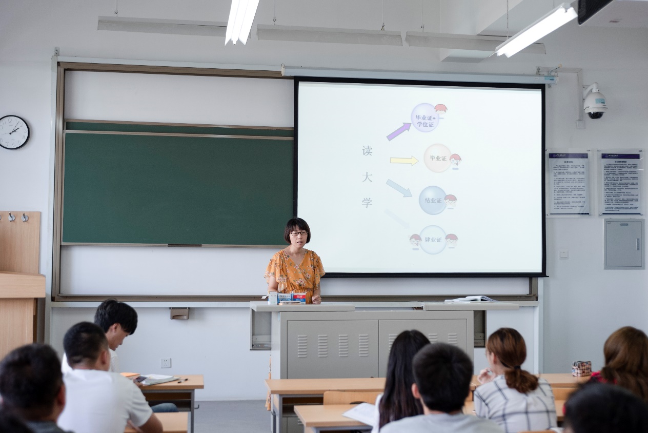 接着,教学科研办公室主任孟庆东向新生讲解《JINNIAN金年会学士学位授予细则》、《JINNIAN金年会本科学生学业修读管理规定》等各项教学管理规定。她指出,今年正值学校学风建设的关键时期,面对接下来更加有难度的课业任务,各位同学应该用更高的标准来要求自己,培养向学氛围,增长学习能力。